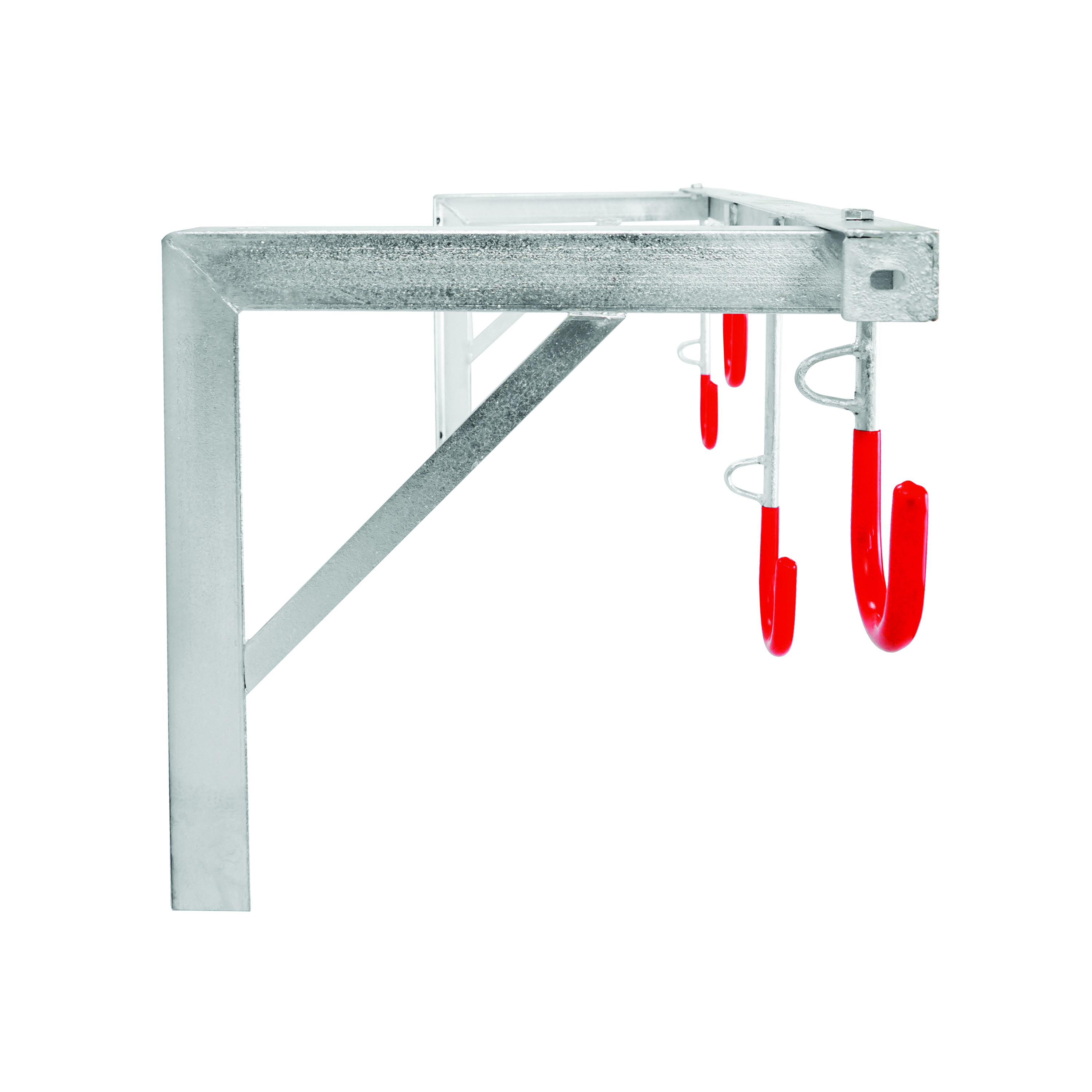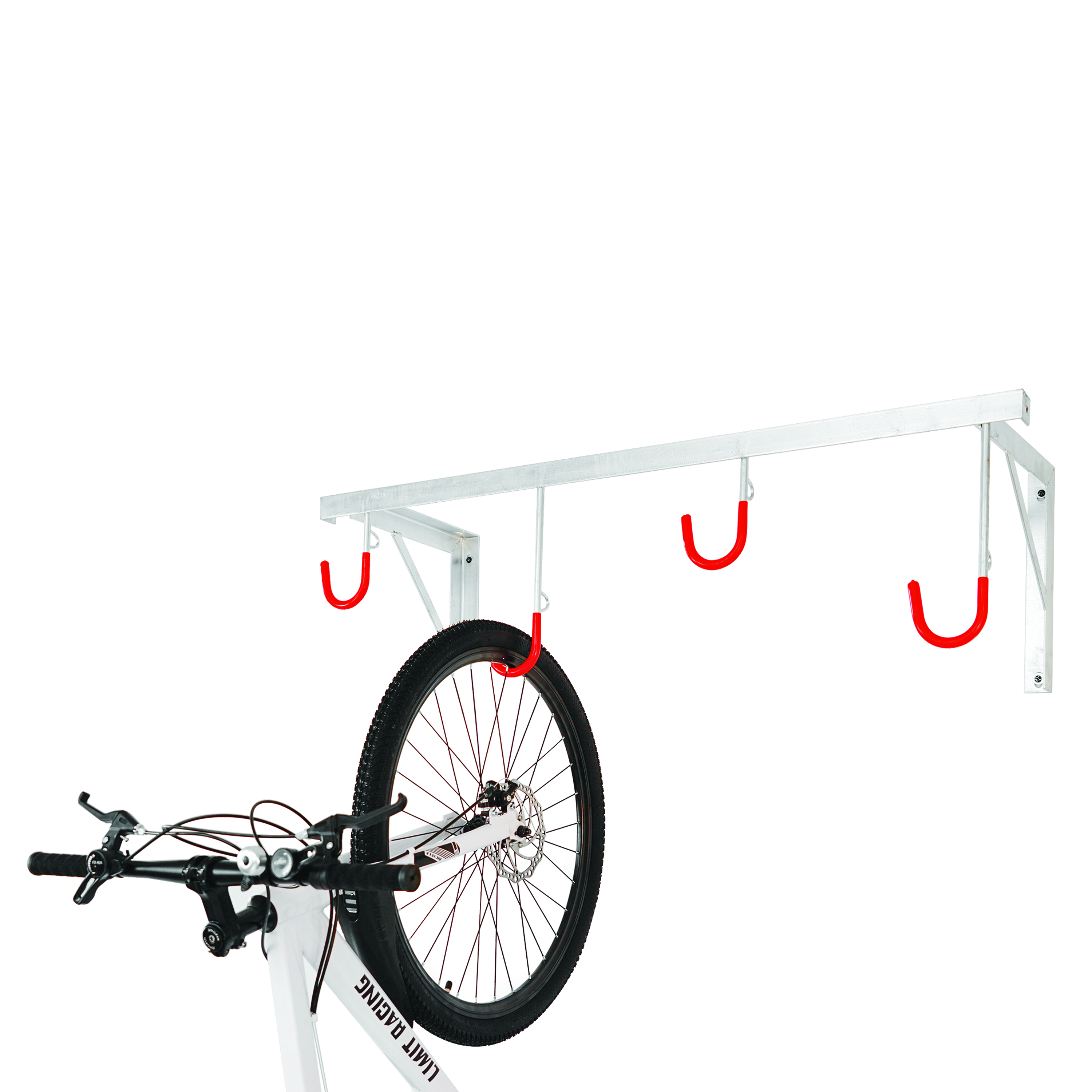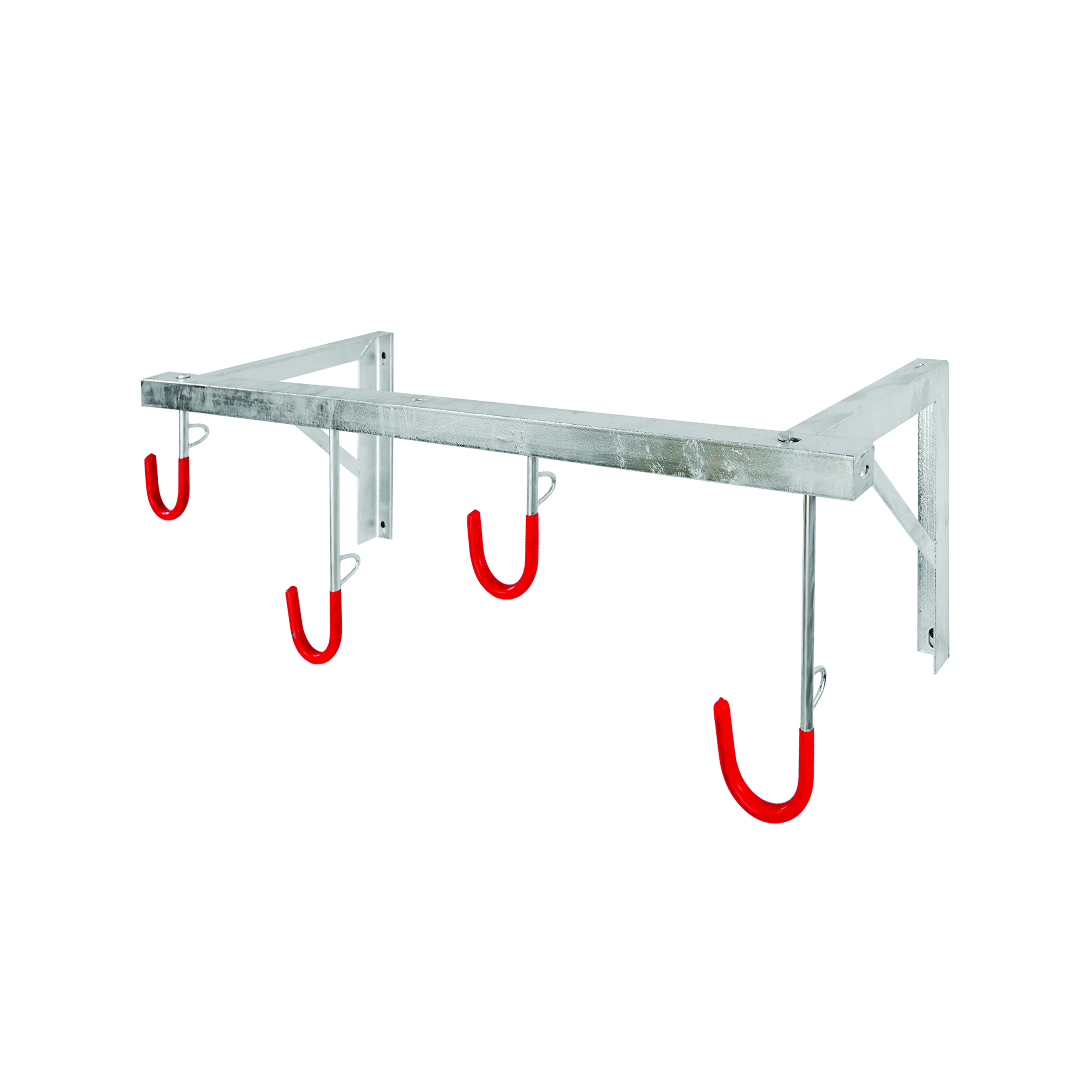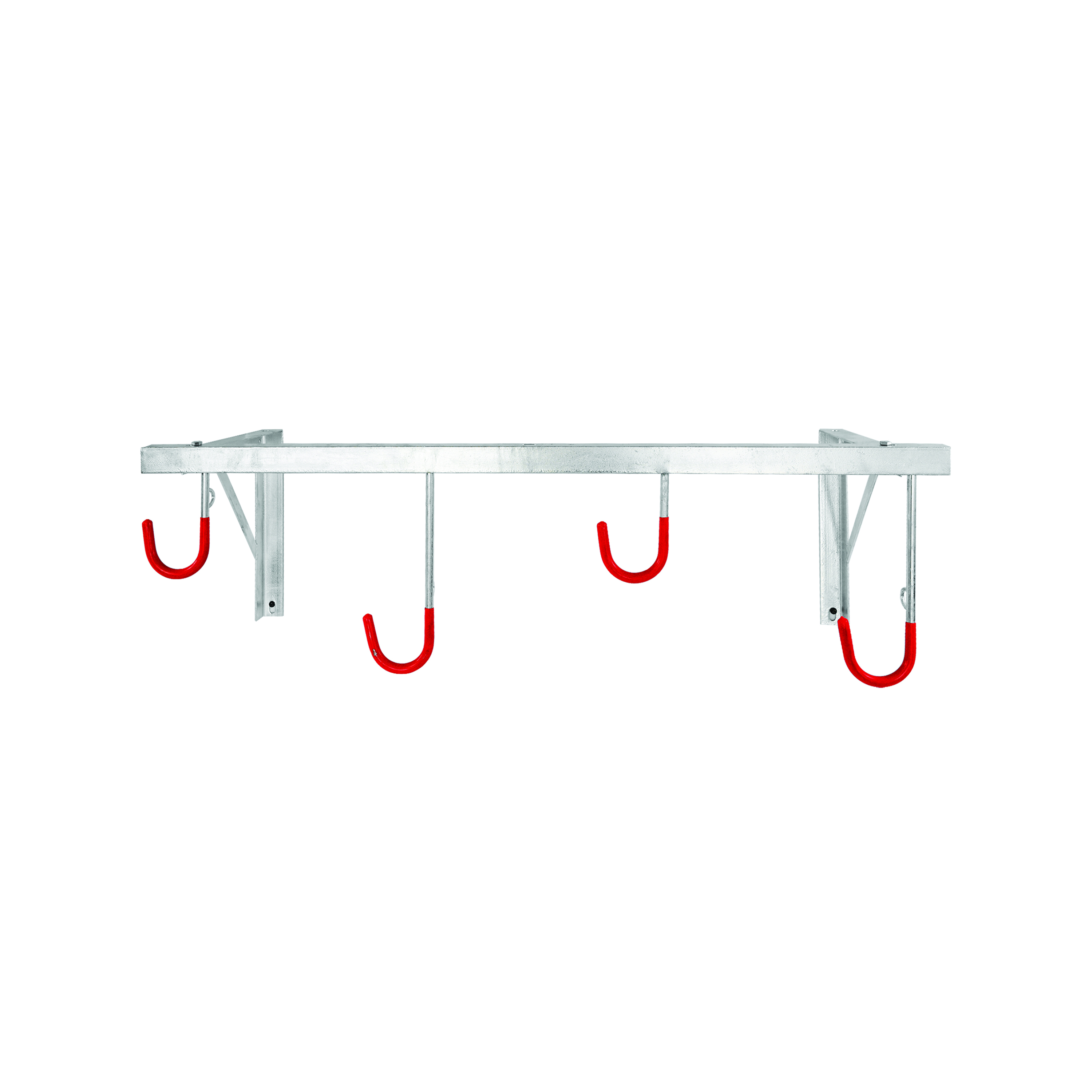 The space-saving 5 Star City Cielo Bicycle Rack is a space saving solution to bicycle storage and is suitable for all types of bicycles, regardless of tyre width. The heavy duty frame is mounted to the wall. The strong steel hooks have a red plastic coating to protect the wheels and are equipped with eyelets for securing anti-theft locks. The bicycle rack is manufactured in hot-dip galvanised steel for a long service life. The hooks are staggered to enable close nesting of the stored bicycles. Recommended mounting height is approximately 2,000mm from floor level. Supplied in knock-down form, all assembly materials and instructions are included in the box.