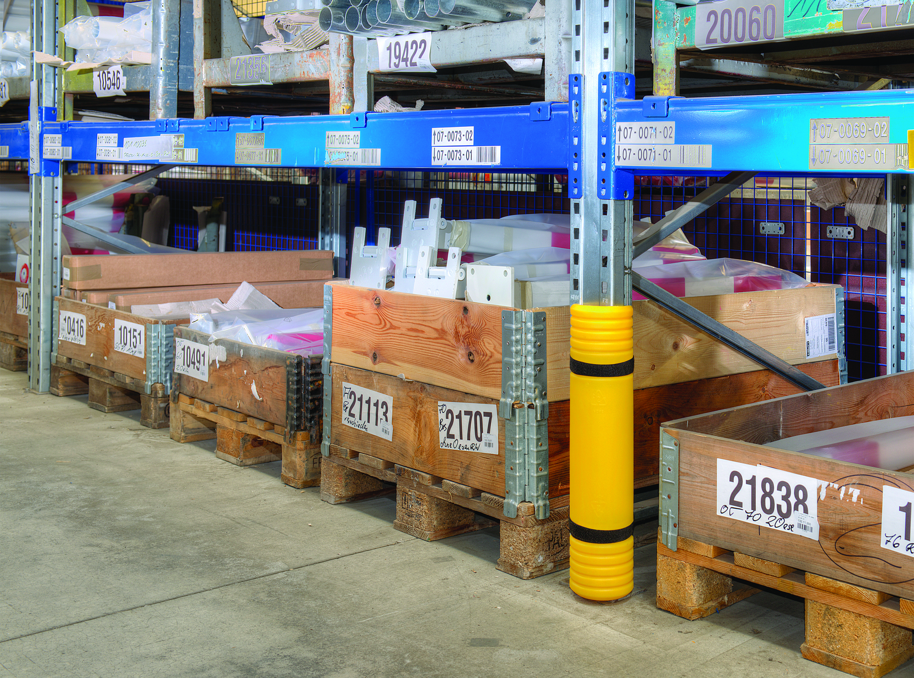5 Star Traffic-Line Pallet Racking Protectors Plastic provide impact protection for pallet racking uprights manufactured from high quality polyethylene. Easily and quickly secured by two Velcro straps – no drilling into the floor required.